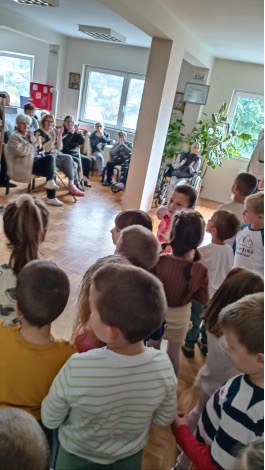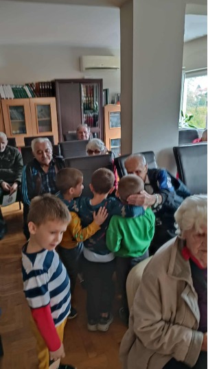 На иницијативу управника „ Дома за стара лица“, деца из старије групе „ Пчелица“ из објекта „Лептирић“ посетила су и дружила се са корисницима дома. Деца су се том приликом представила различитим музичким нумерама у чему су сви уживали. Након тога су поделили честитке и поразговарали са старим лицима. Сусрет је протекао у пријатној и емотивној атмосфери.