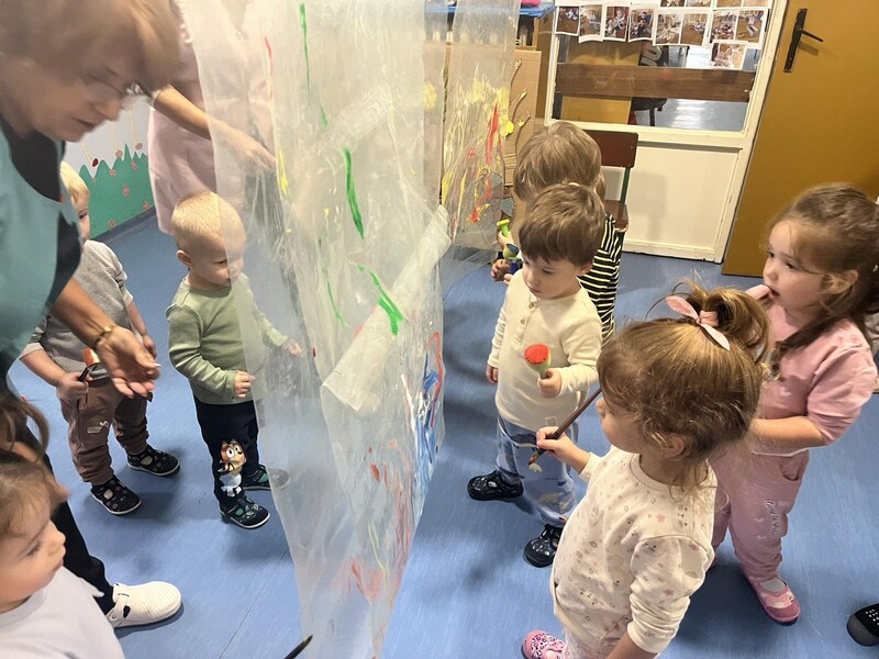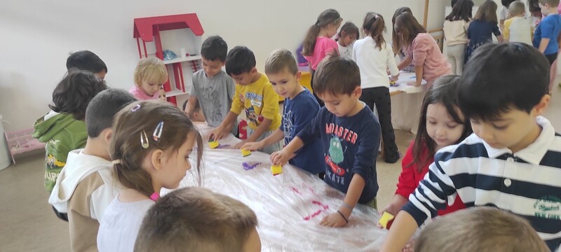 Заједно смо осликавали на платну и најлону, изражавајући машту, радост и креативност кроз боје и покрет. Радови који су настали сведоче о дечјој слободи изражавања и радости заједничког стварања.